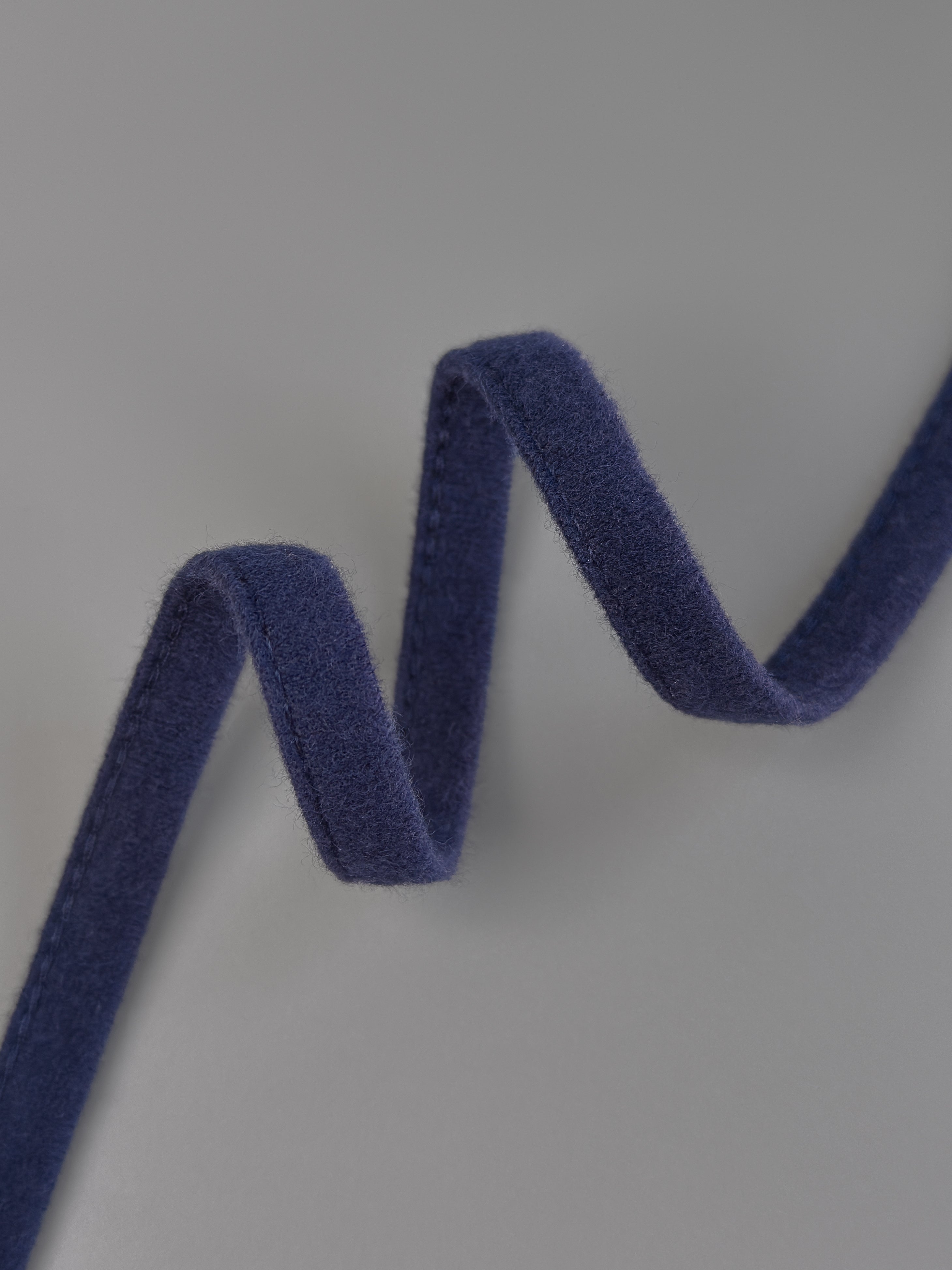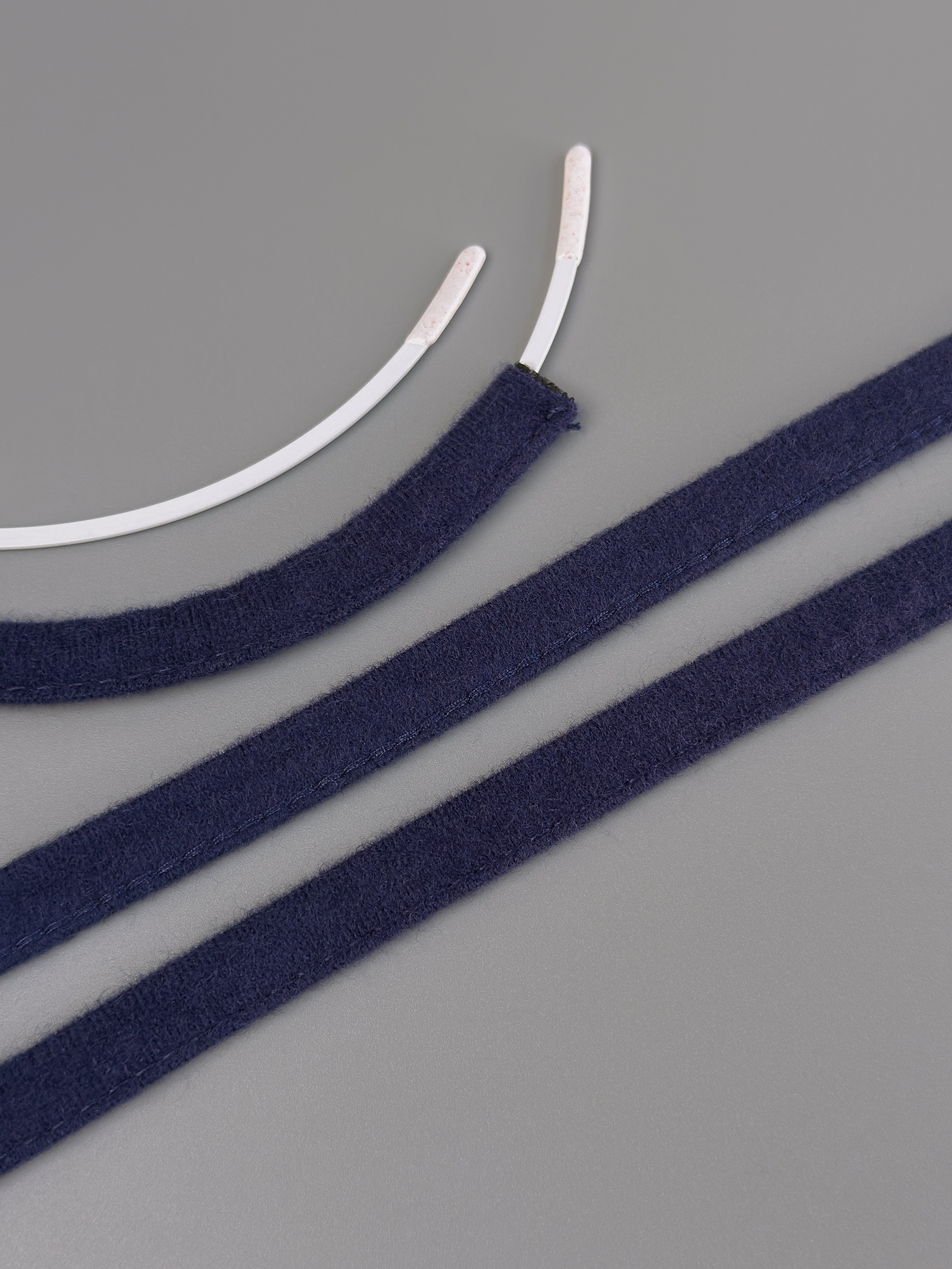 Plush underwire casing (underwire channeling / bra wire channeling) for sewing underwired bras. Non-stretch tape. With a thin inner lining, it stays flat and low-bulk, keeping seams neat without extra thickness. Soft and easy to sew, with a single side stitch that forms the channel for the underwire.