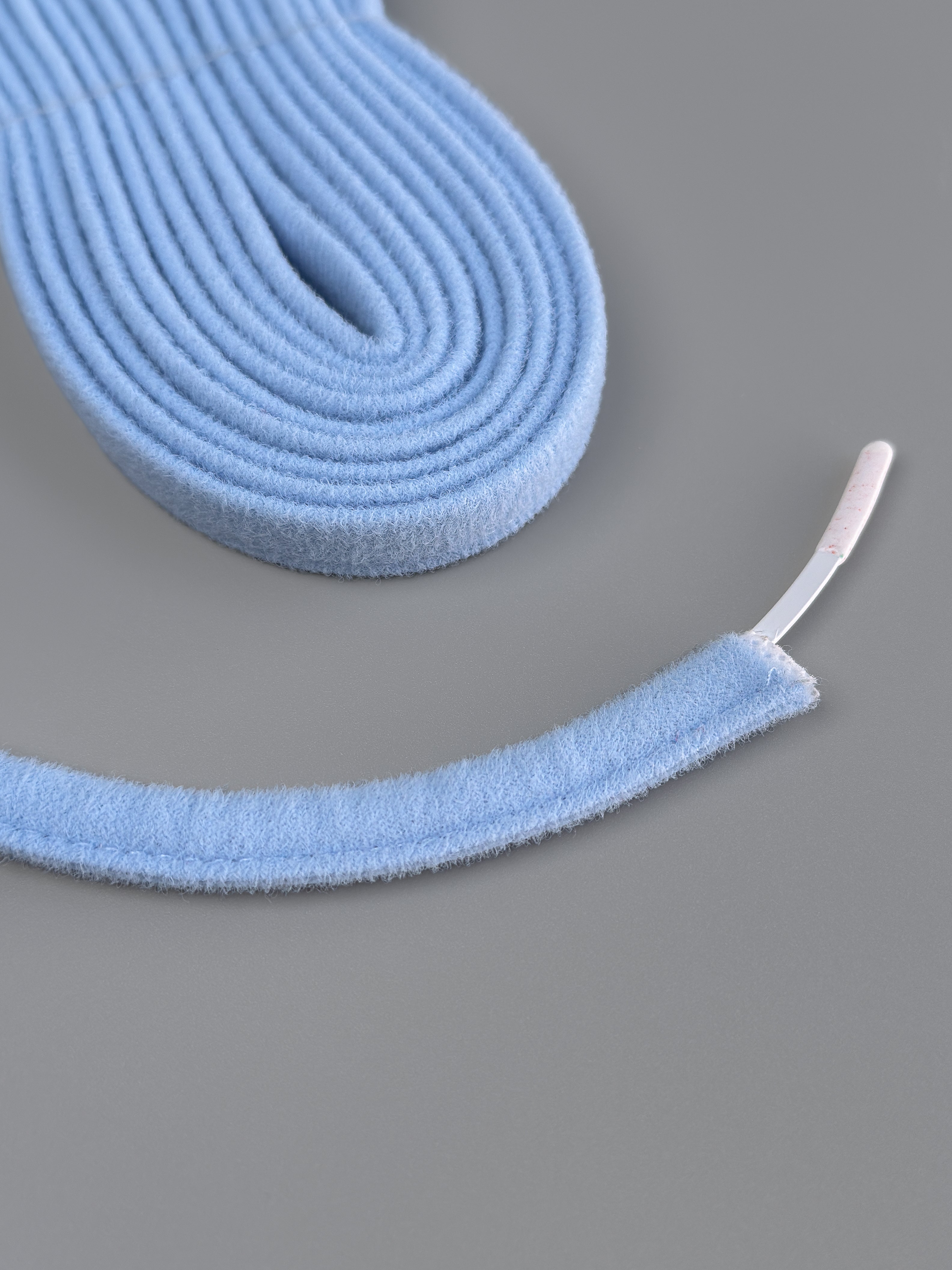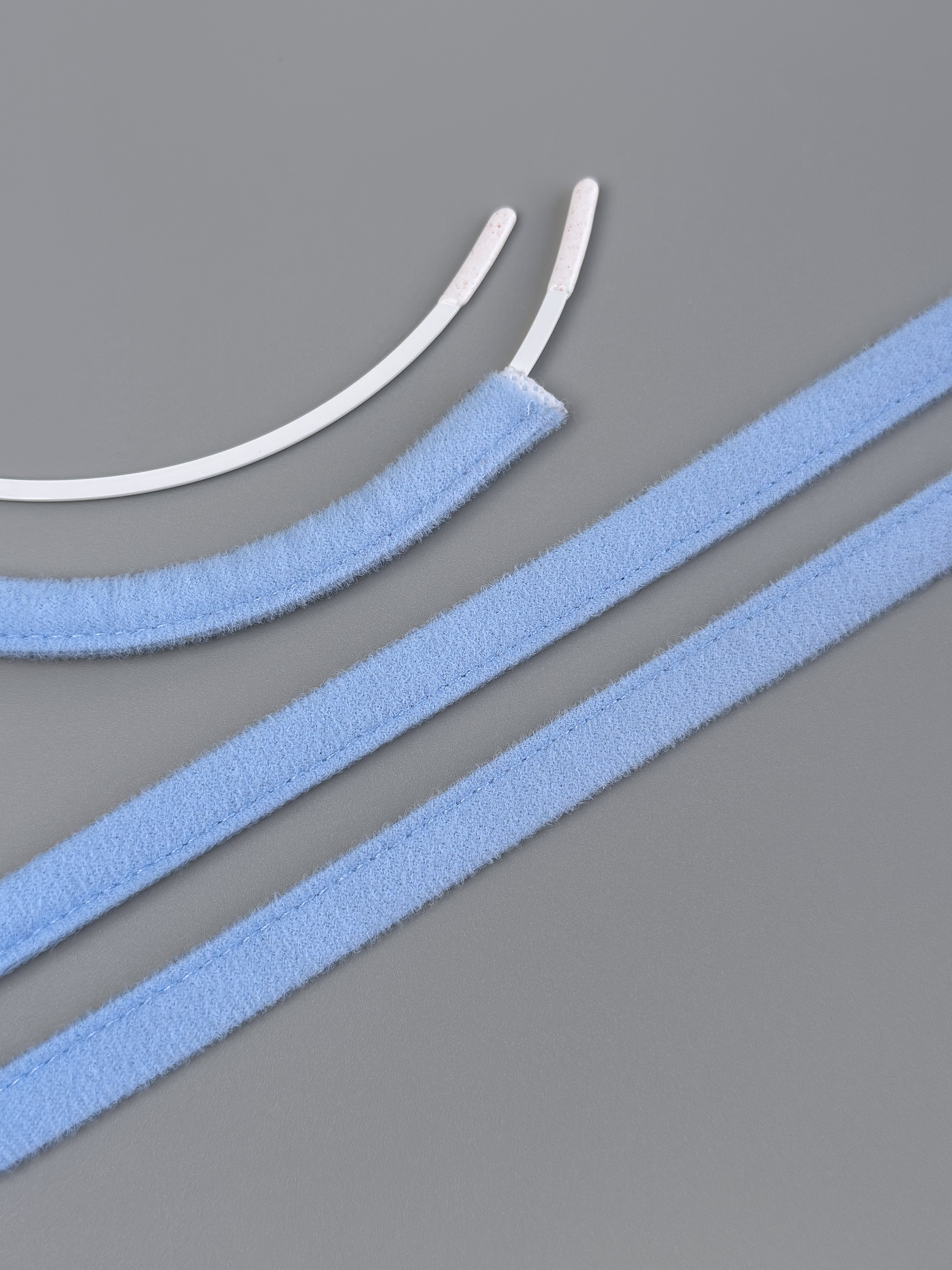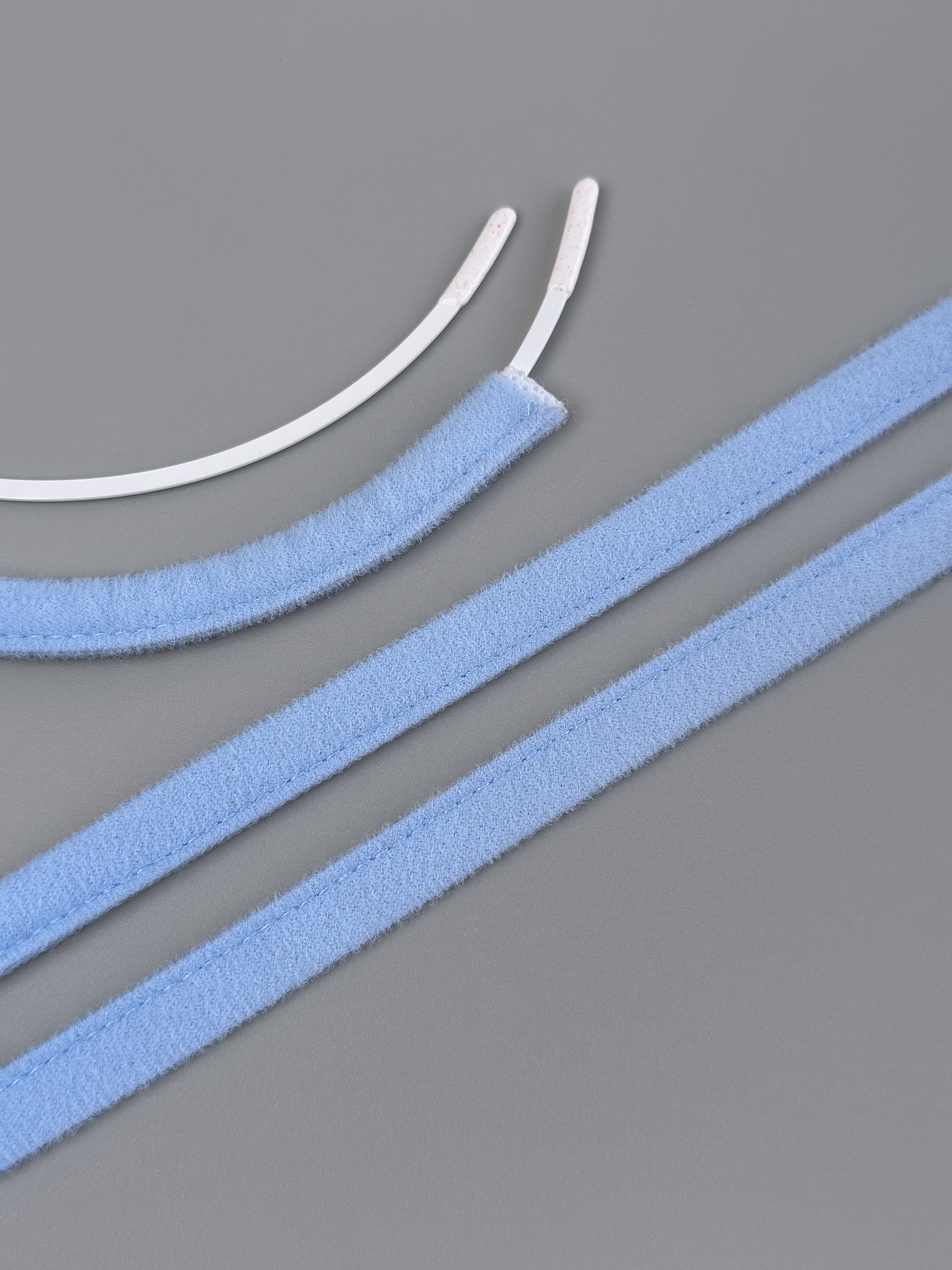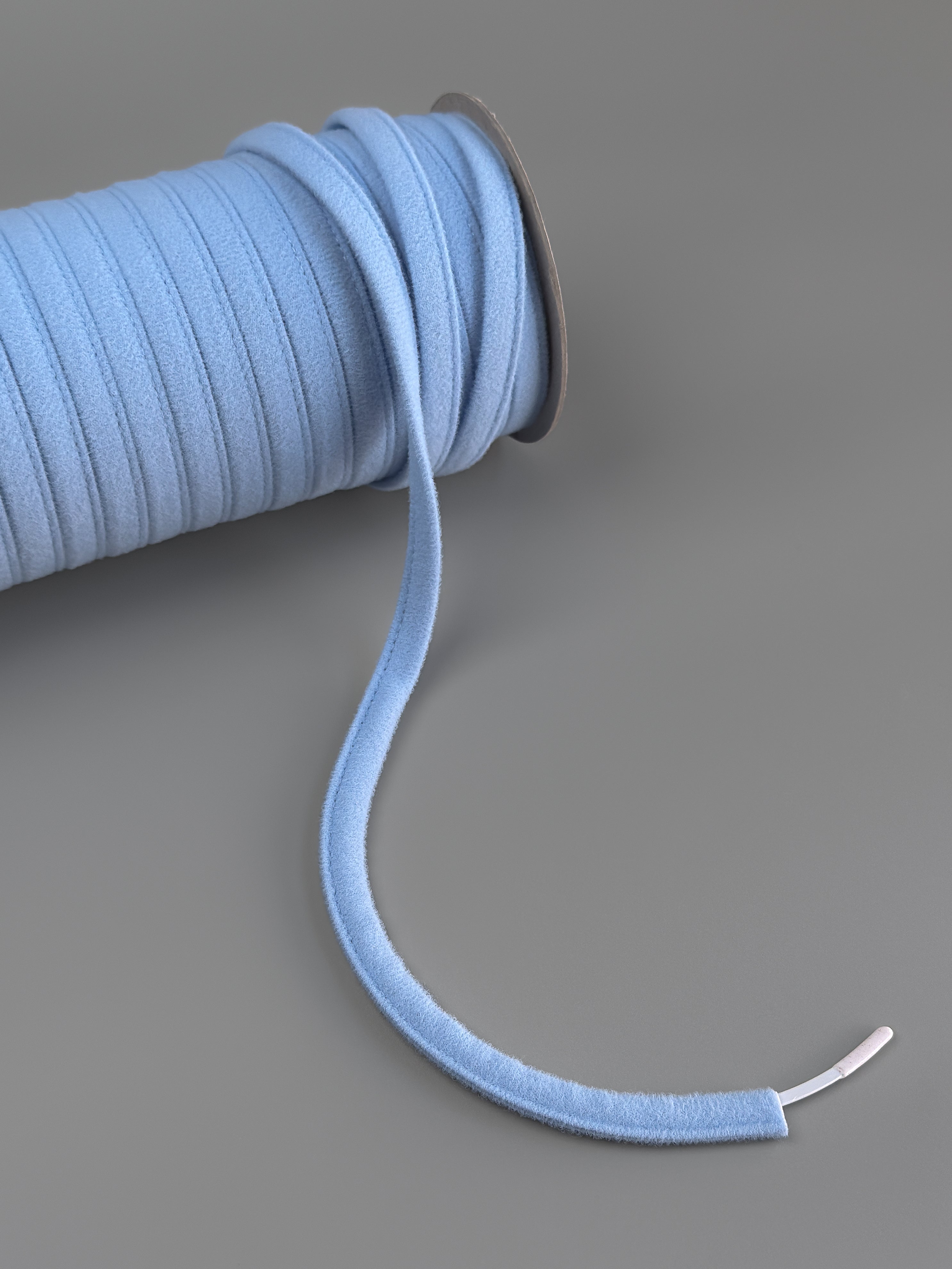 Reinforced plush underwire casing (underwire channeling) for underwired bras. Non-stretch, with a firm inner layer to keep the channel stable—great for plus-size styles. Soft, with a single side stitch that forms a neat channel for the underwire.