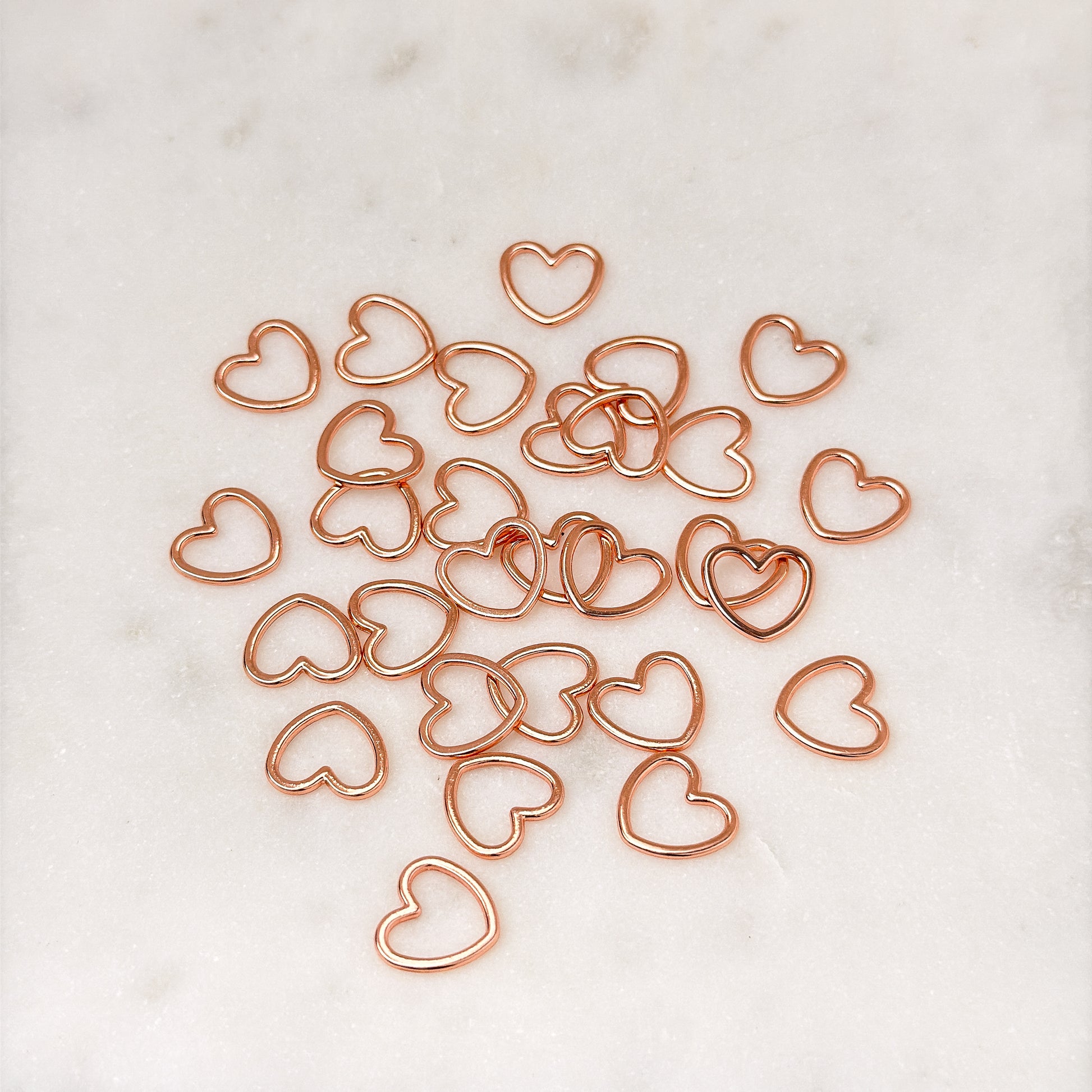 Enhance your lingerie designs with these 10mm heart-shaped rose gold-plated charms. Made from high-quality, nickel-free metal, these charms offer a polished rose gold finish, adding a stylish, romantic accent to your creations.