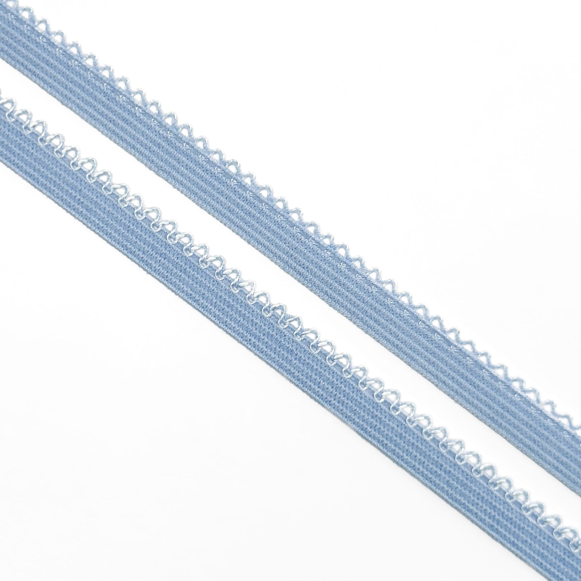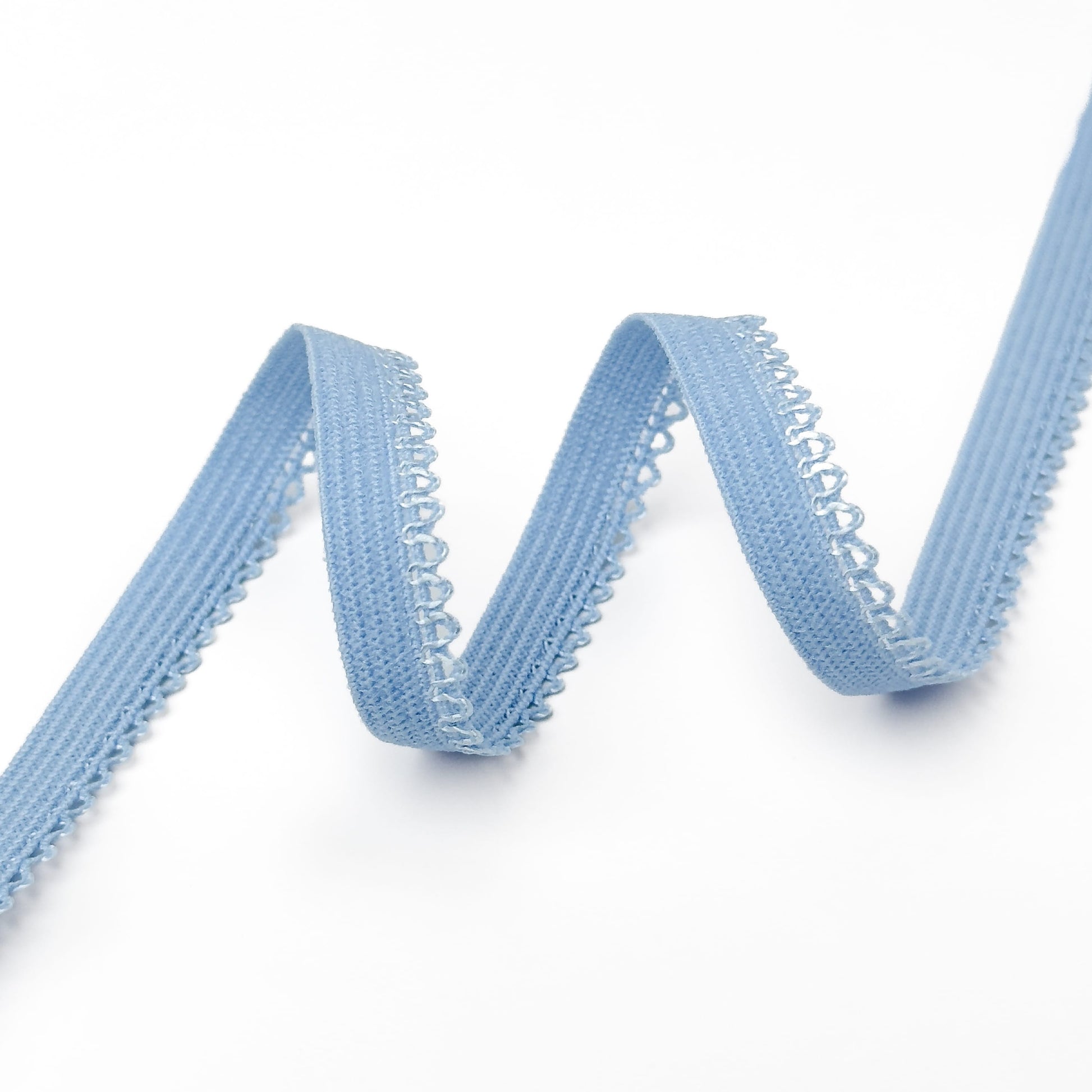 Soft and flexible finishing elastic with a shiny thread along the edge. Ideal for sewing panties, trimming camisoles, children's clothing, and underwear.