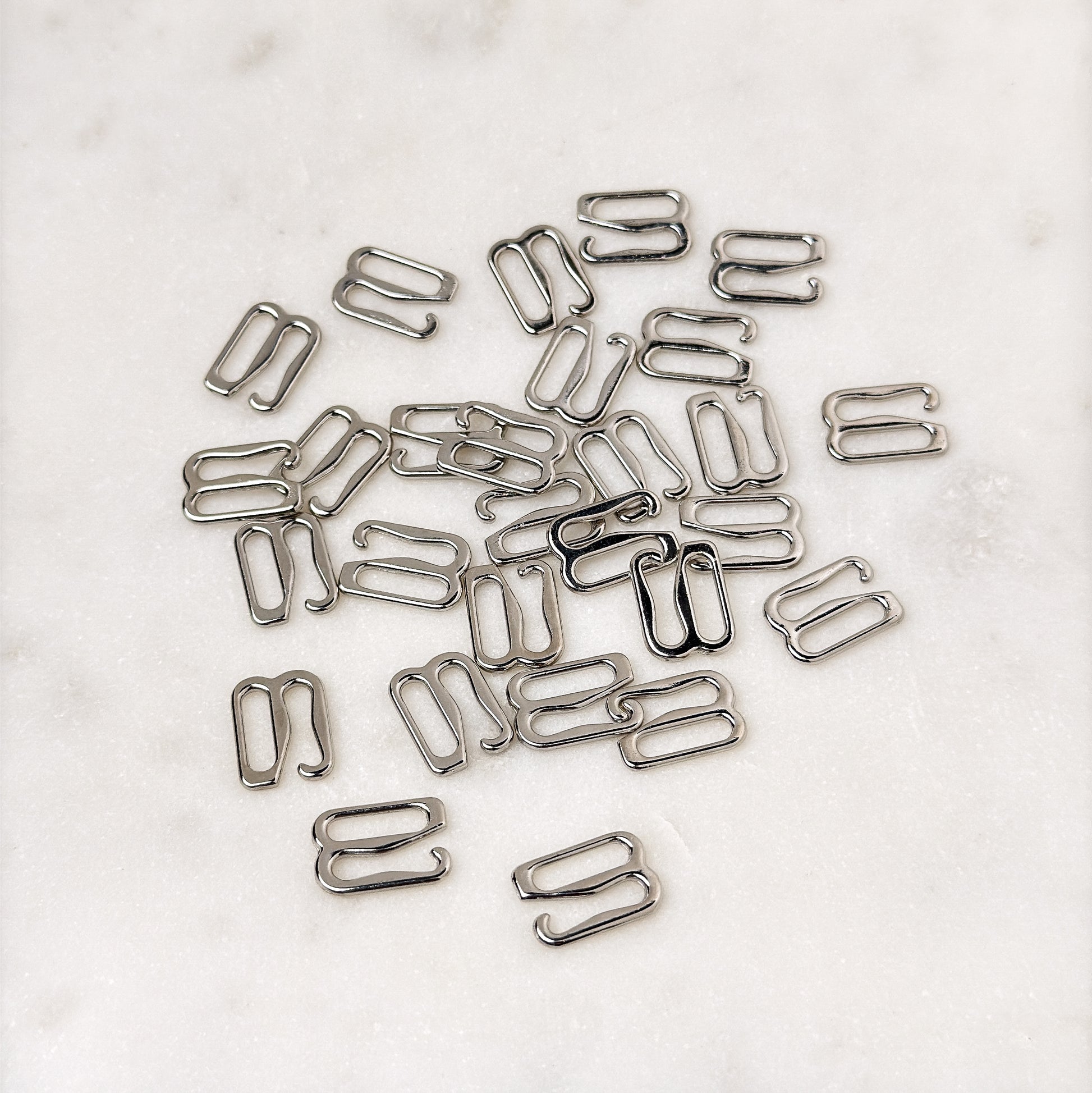Add a touch of elegance and functionality to your lingerie and swimwear creations with these 10mm silver-plated G-hooks! Crafted from high-quality, nickel-free metal, these hooks are designed to provide a secure and adjustable fit. The polished silver finish resists tarnishing, even when exposed to chlorine and salt water, making them perfect for high-quality, durable designs.