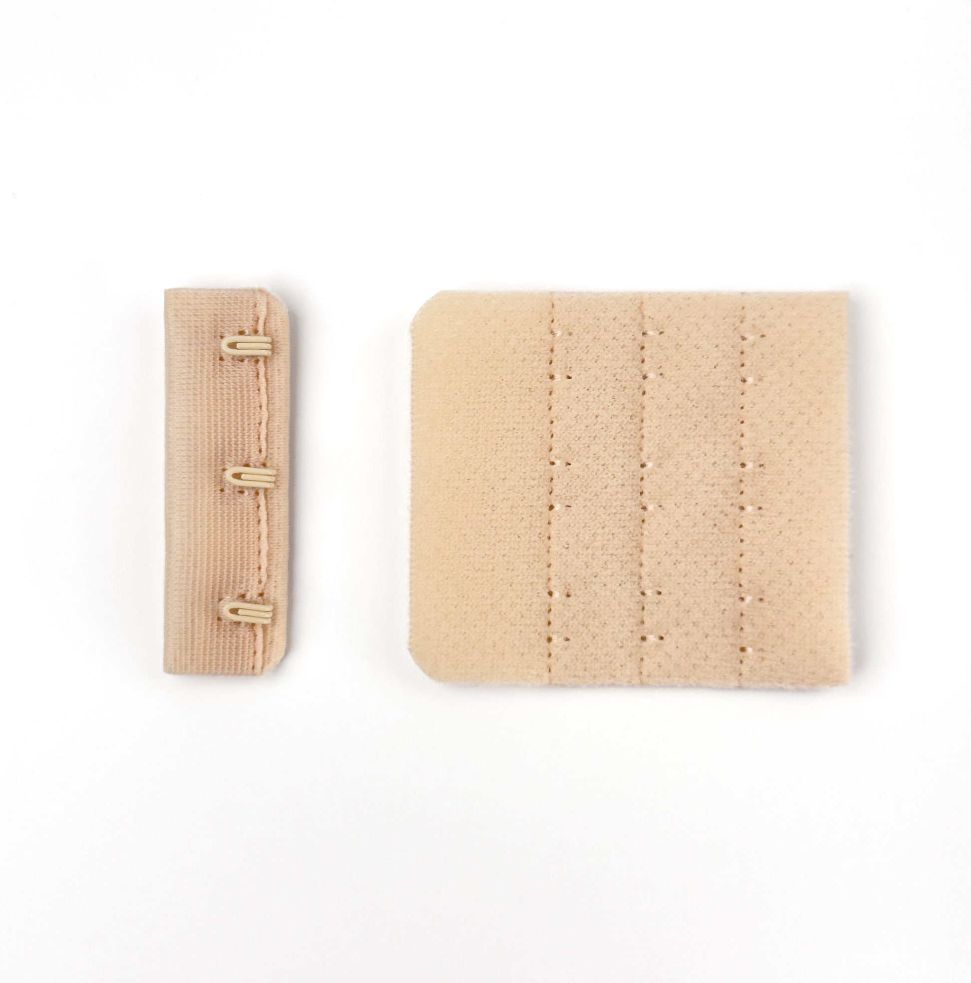 This bra hook and eye closure features a soft, brushed back for added comfort against the skin. Designed for secure fastening, it's easy to sew into lingerie, providing a smooth and functional finish. Ideal for creating adjustable and comfortable bras.