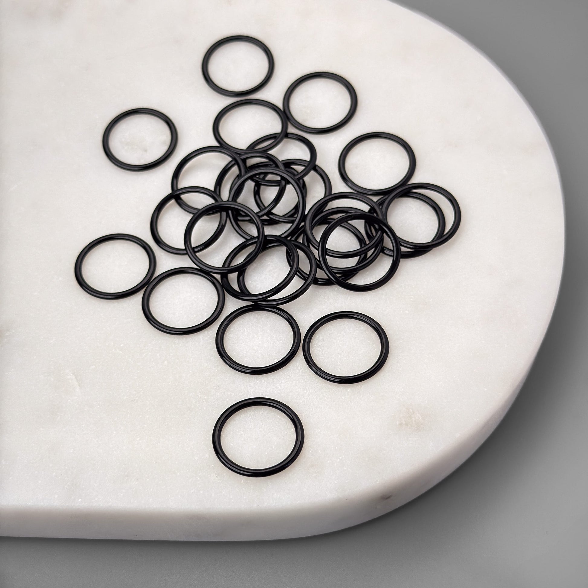These 15mm rings with a durable black nylon coating are perfect for lingerie and fashion accessories. The nylon layer offers a sleek, matte finish while providing extra durability and protection against wear. Made from high-quality, nickel-free metal, these rings are ideal for use in straps, bands, and other adjustable connections.