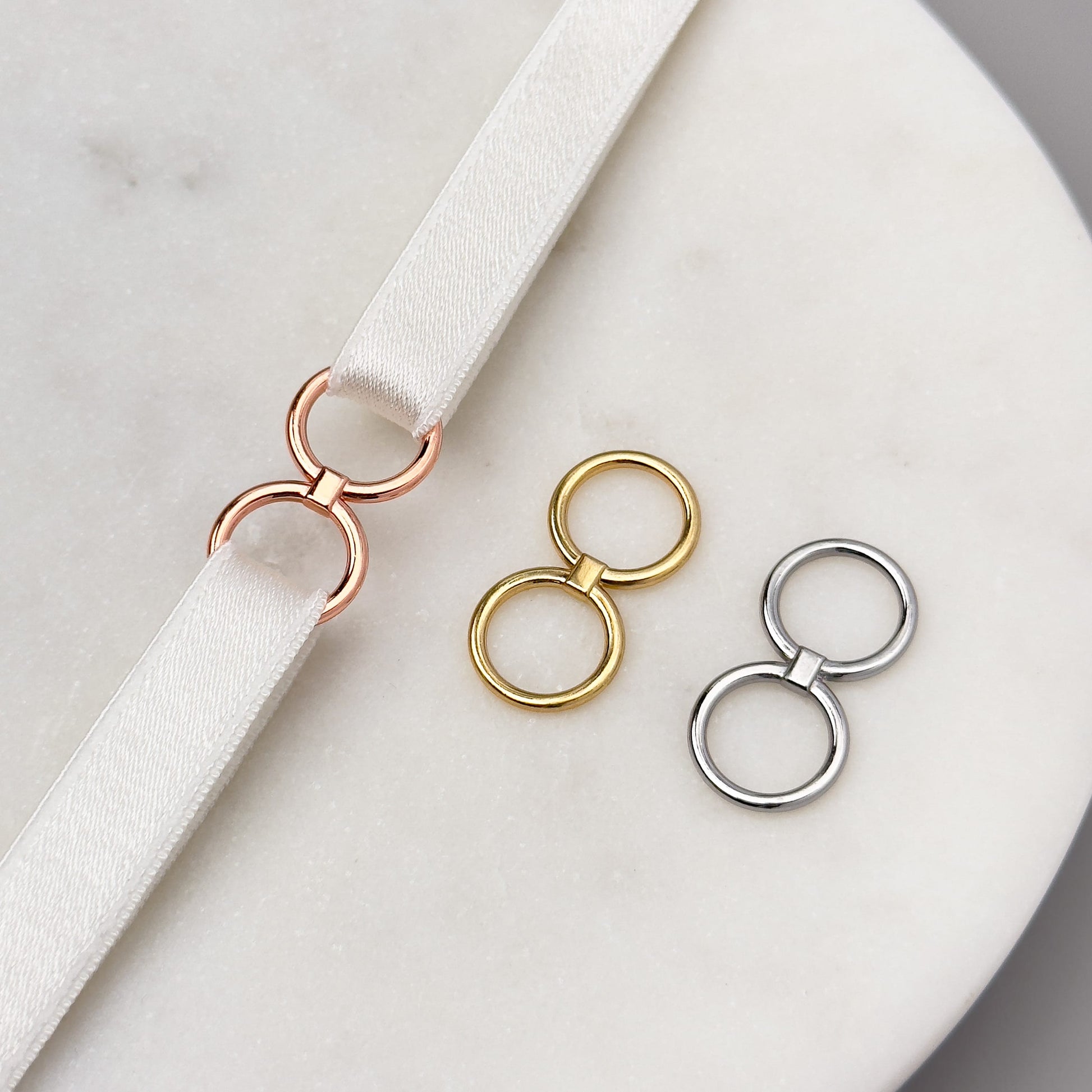 These 10mm double gold-plated rings are perfect for adding functional and stylish connections in lingerie and other fashion projects. Made from high-quality, nickel-free metal with a polished gold finish, they are designed for durability and elegance, enhancing the look of straps, bands, and decorative details.