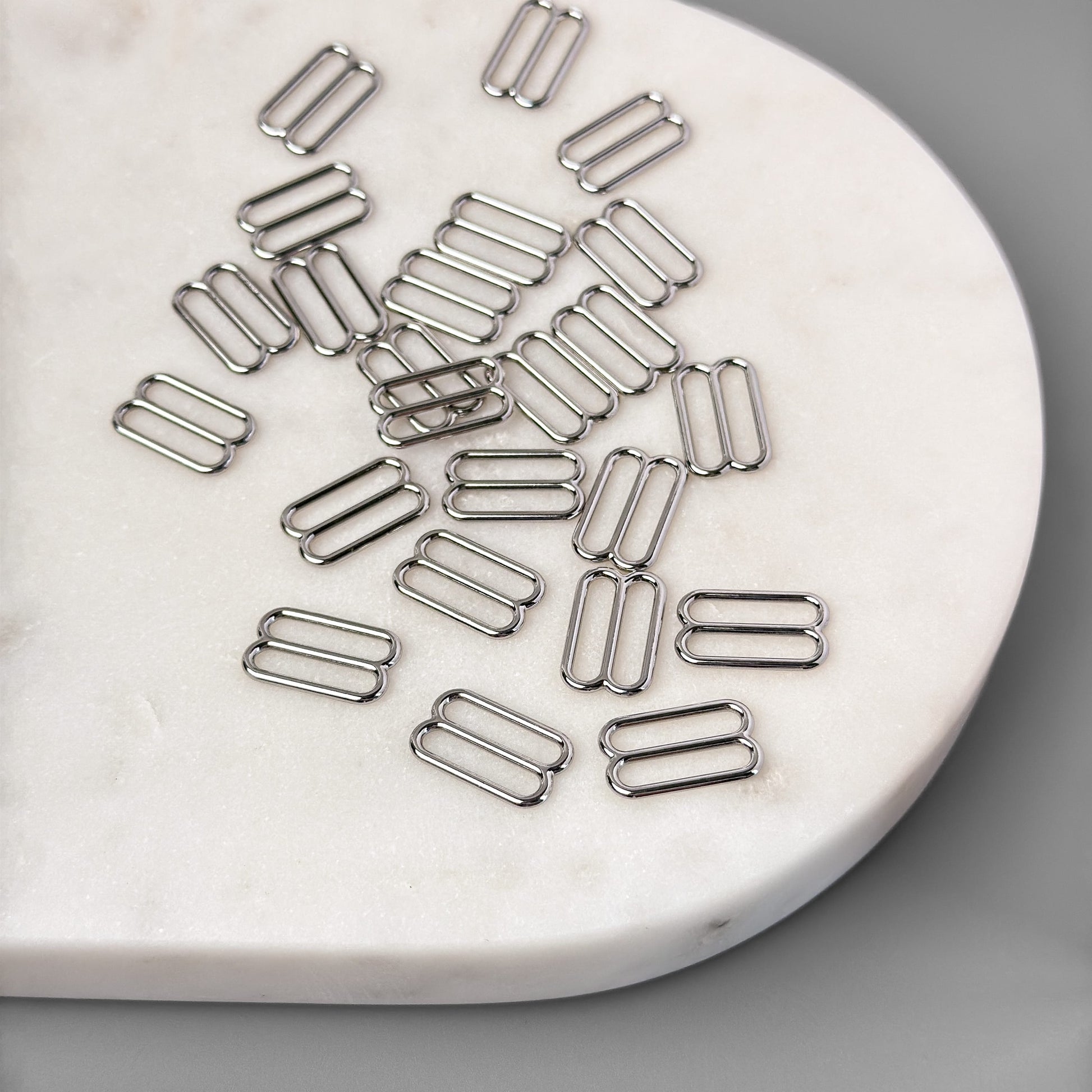 Complete your lingerie and crafting projects with these elegant 15mm silver sliders! Crafted from durable, nickel-free metal, these sliders feature a sleek and polished silver finish that adds a touch of sophistication to any design. They are resistant to both chlorine and salt water, ensuring they maintain their beauty and functionality in various environments, including swimwear and lingerie.