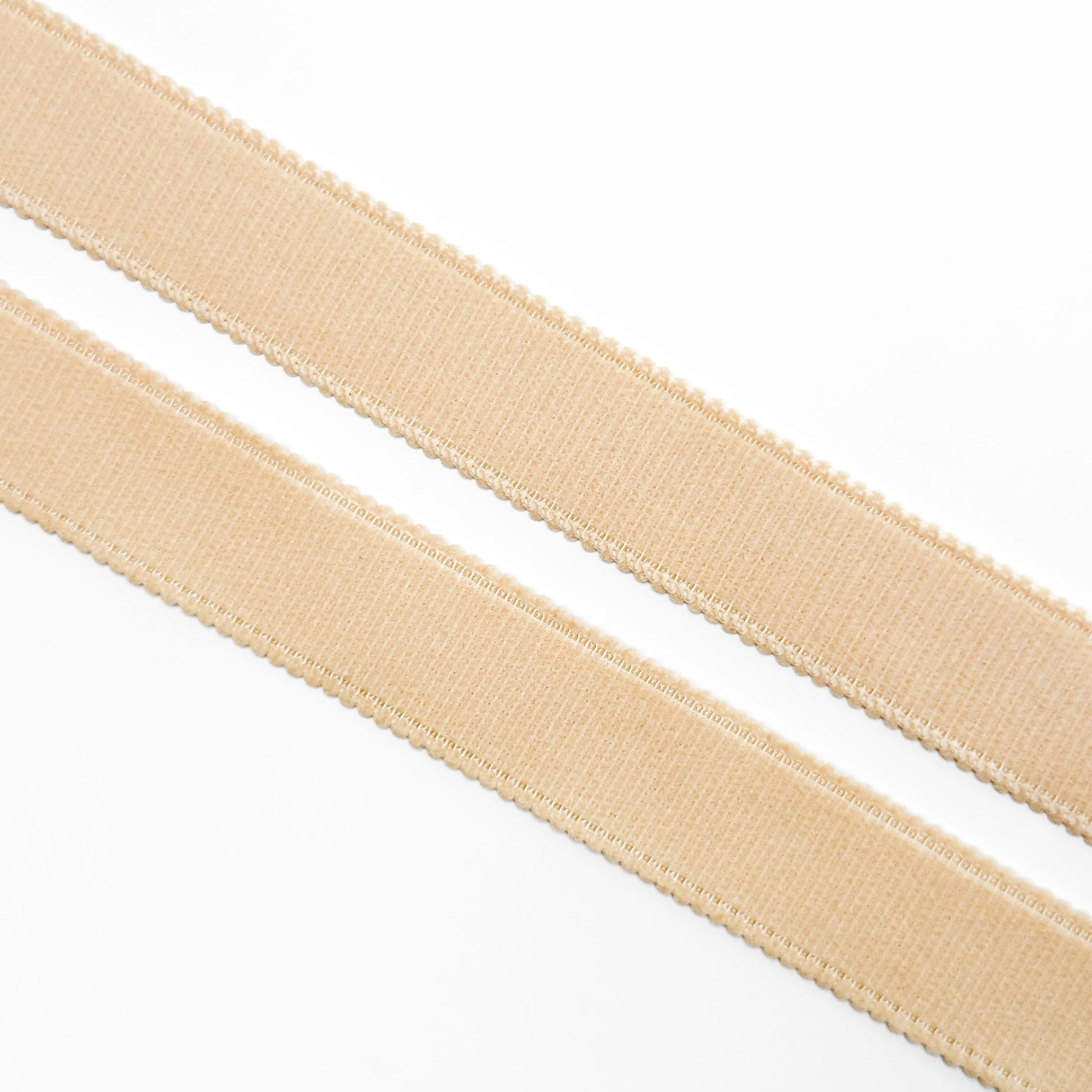 Classic strap elastic from Lauma. Both sides are matte, without patterns, and slightly fuzzy. Both edges feature small scalloped teeth, giving it an elegant look. This strap elastic has a low stretch and high elasticity. Tactilely pleasant, it is perfect for creating comfortable lingerie.