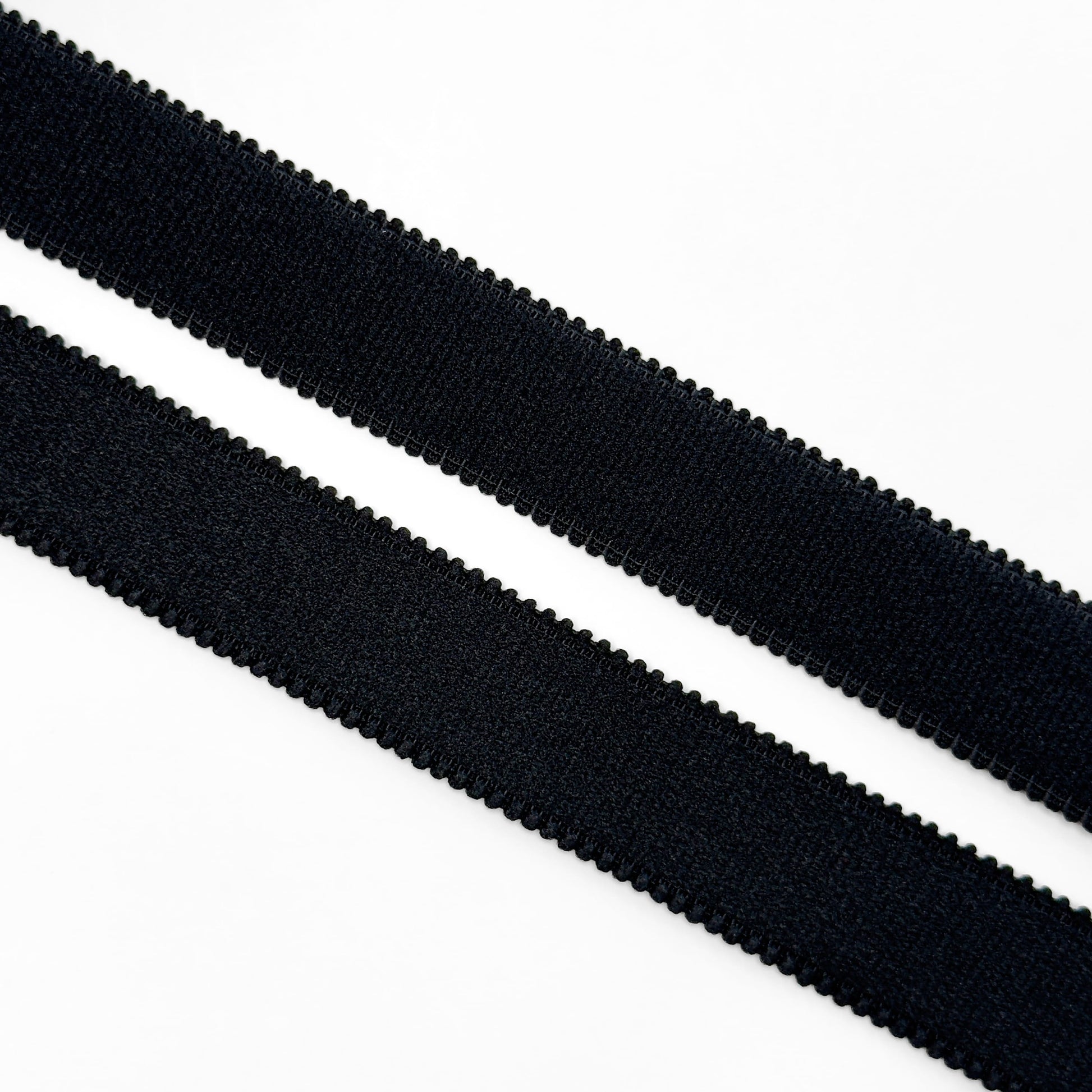 Classic strap elastic from Lauma. Both sides are matte, without patterns, and slightly fuzzy. Both edges feature small scalloped teeth, giving it an elegant look. This strap elastic has a low stretch and high elasticity. Tactilely pleasant, it is perfect for creating comfortable lingerie.