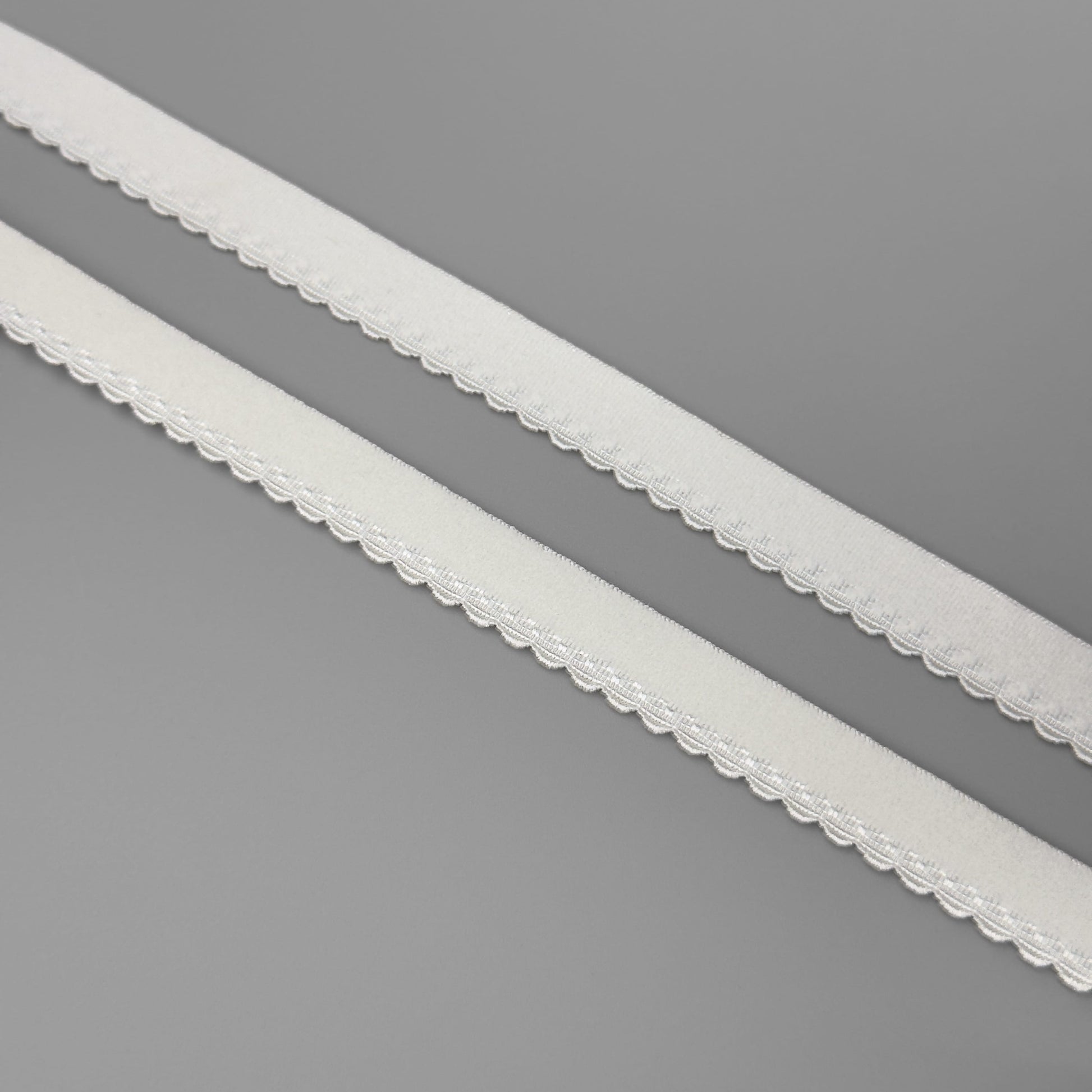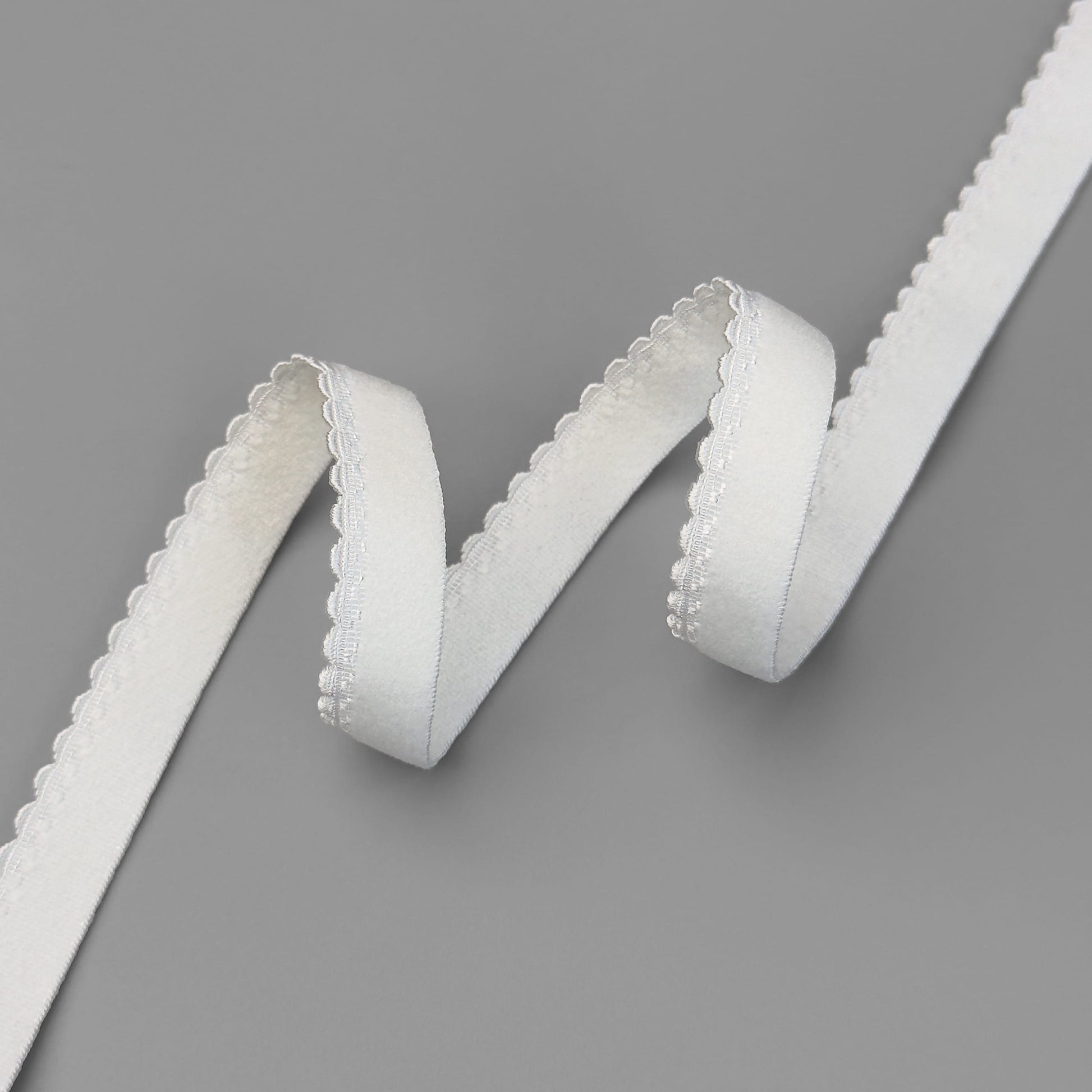 Soft and velvety to the touch, this elastic features a decorative pattern and scalloped edge on one side. It offers excellent elasticity, holds its shape well, and doesn’t stretch out over time. Perfect for bra band finishing.