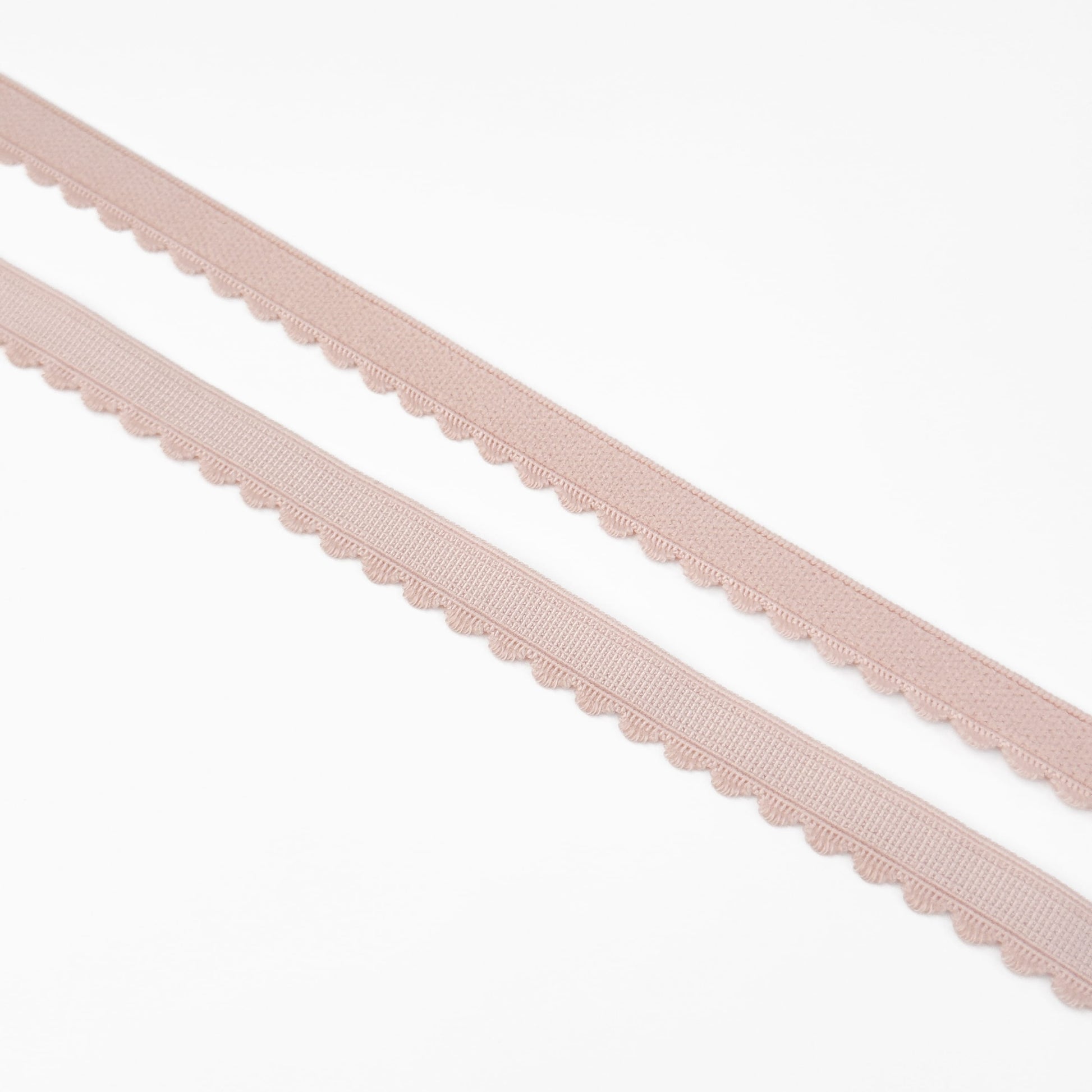 Ribbed on one side and soft, velvety to the touch on the reverse, this elastic features scalloped edges on one side. It offers excellent elasticity, maintains its shape, and doesn’t stretch out over time. Ideal for bra band finishing.