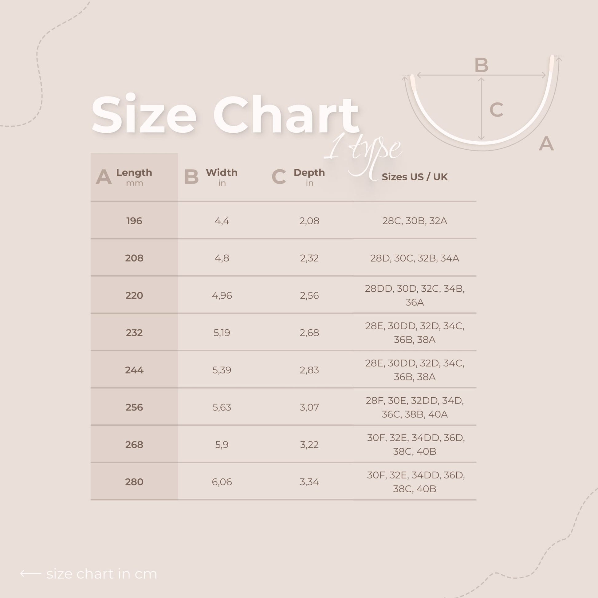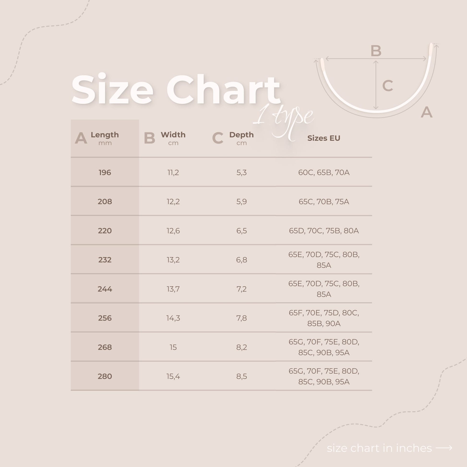 Type 1 - Classic Oval Shape: A traditional design for everyday lingerie, offering comfort and reliable support. Other classic styles available: Type 3 | Type 13
